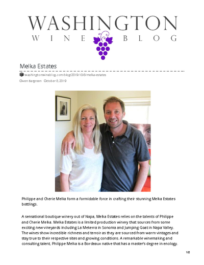 Philippe and Cherie Melka form a formidable force in crafting their stunning Melka Estates bottlings.
