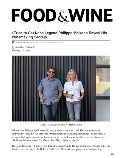 This past December, I paid an outdoor, distanced visit to Philipe and his wife Cherie at Melka Estates, their winery in St. Helena, California. After side-stepping around a charming, slobbery dog, and just before flipping on a tape recorder, I suggested holding off on pouring any wine. I wanted their full story: from childhood until 4:30 p.m. that day when the interview was scheduled to wrap up.